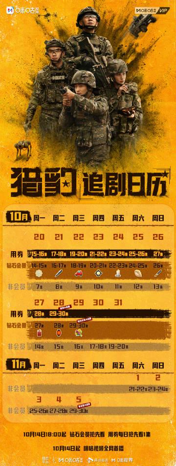 根据官方发布的追剧日历,《猎豹》已于3月15日在咪咕视频独家上线,每周五至周日更新两集。这个更新频率还挺良心的,既不会让观众等得太着急,又能保持一定的追剧热情。不过说实话,每次看完最新集数,我都会忍不住去翻预告片,这种期待感真的太折磨人了!