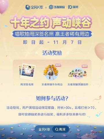 说起来,《王者荣耀》这次十周年确实玩得挺大。不仅请来了天籁之音周深坐镇,还联合全民K歌搞了个"声动峡谷"特别活动。从即日起到11月7日,只要你登录全民K歌,搜索"周深"就能参与抽奖,奖品包括周深亲笔签名照、随机手办周边和英雄挂件,简直是粉丝和玩家的双重福利!